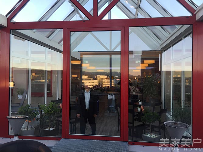 考察团,下一站来到了德国,由于德国经历了二战时期,所以有部分的建筑物都是现代化的建筑,在“威尔(莱茵河)”小镇,大家发现,一个小镇的建筑物内所有产品都是基于品质的,铝合金断桥平开门、断桥内开内倒窗和阳光房产品所用的型材、五金等,都是采用每一个零部件国际最知名的品牌,比如:门窗系统为旭格、合页采用大鸡、窗控系统采用诺托(ROTO)或格屋(GU);并且这里的铝合金材料壁厚基本都是断桥2.0mm,颜色为双色,这种窗的隔音效果不比木窗的差,也起到很好的隔热功能!可以推测,在国土辽阔的中国有着区域的复杂气候条件,所以针对国内市场应该开发出适应当地需求的门窗!