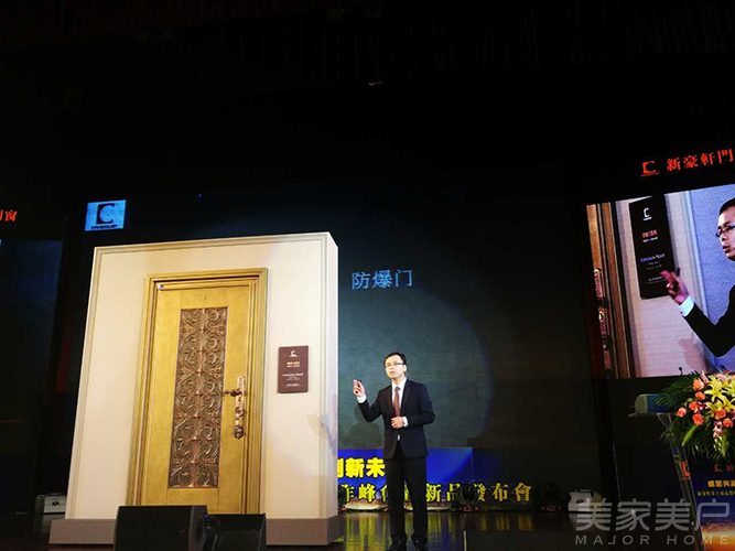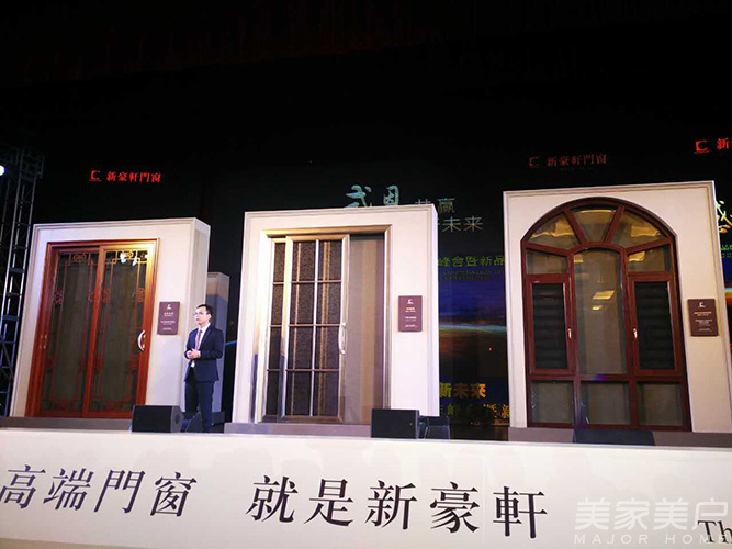 晚上,还举行了新豪轩2016新品发布会。新豪轩总经理黎国亮讲解了防爆门、不锈钢门、新品木门、V90铝门、铂金系列铝门、弧形窗、至尊地弹门等多款新产品的性能和体验,更加强了经销商与新豪轩共发展的信心。