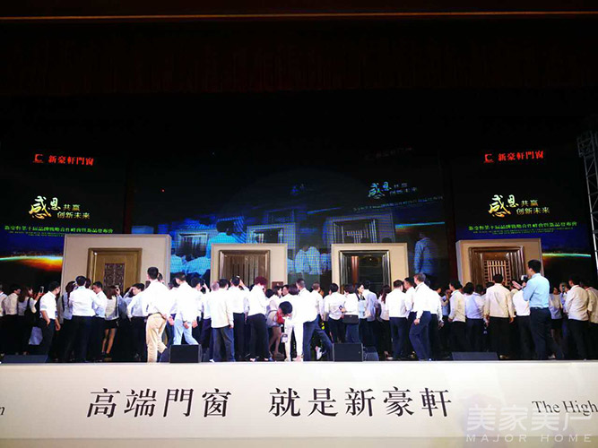 5月20日,“感恩共赢·创新未来”新豪轩第十届品牌战略合作伙伴峰会暨新品发布会在佛山绿湖温泉度假酒店隆重举行。新豪轩集团董事长冯董,新豪轩集团总经理冯文生、梁剑新、黎国亮,新豪轩财务总监胡志容,新豪轩木门分公司总经理胡振深,新豪轩营销总监戚冰锋,新豪轩集团营销副总监尹显青,和君智业老师徐伟,央视代表于现叶、陆红伟,广东省门业协会副秘书长喻凯,飞幕集团亚太区运营总监James Willianm,飞幕集团中国营销总监吴坚,飞幕集团项目经理钟雄明等领导嘉宾以及新豪轩全国经销商900余人出席活动。伟德betvlctor旧版网、《居舍·中国门窗》、慧亚传媒、广州日报、慧聪网、信息时报、网易家居、新浪家居、搜狐家居等多家知名媒体现场报道。