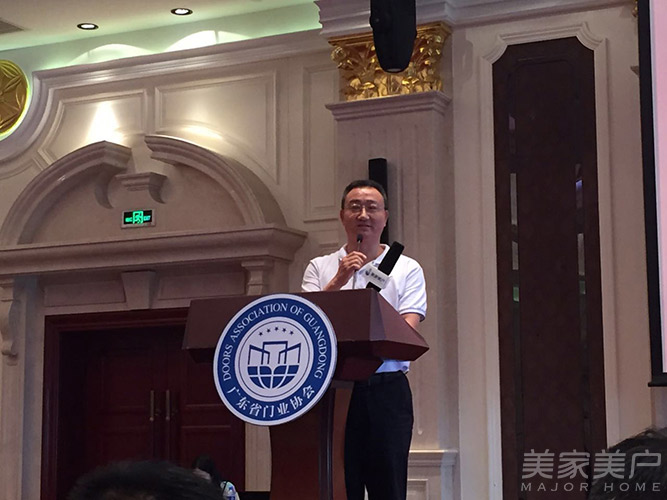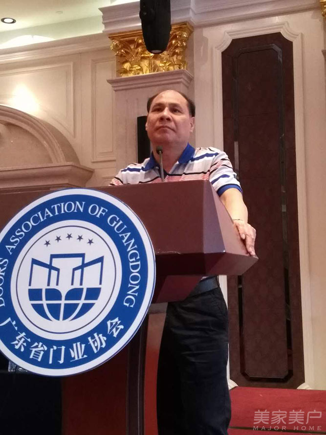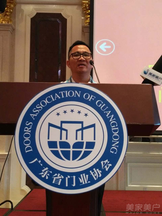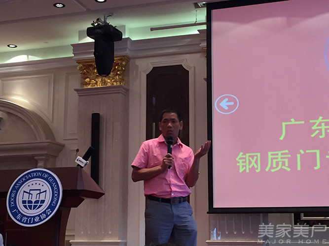 广东省门业协会钢质门专委会首任会长吴奋谋在会上致辞。他说:“钢质门行业很大,企业很小。金大田也在思考如何把钢质门行业做的更好,相信钢质门专委会的成立定能推动更多企业的发展。”