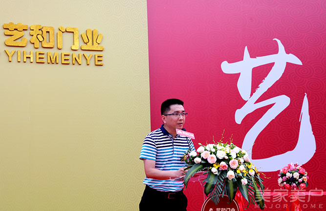 开平市水口镇人民政府副镇长李健鹏上台致辞:“艺和门业经过了18年的艰苦奋斗,成为了现代化的综合型门业制造企业之一,艺和已成为行业内的知名品牌。并代表政府将一直支持、关注艺和,同时也希望艺和门业越走越远。 ”