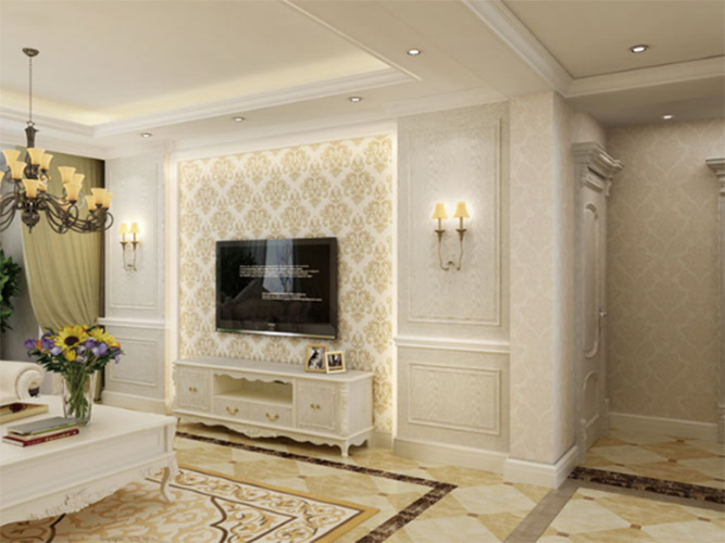 电视背景墙的空间与其他背景墙布局方式一脉相承,背景简约,不过于高调,但又保留了欧式独特的韵味。