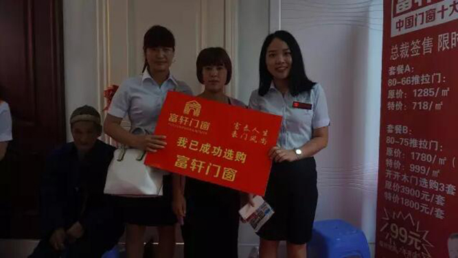 赫章县首次举办家居建材博览会,受到消费者的热烈欢迎与支持,现场人山人海,富轩展位门庭若市,总部派往的销售精英也热情高涨,耐心地为顾客讲解门窗的品质细节,顾客亲身体验了富轩门窗的推拉手感、产品设计等,对产品质量赞不绝口,不少客户在现场马上下定金签单。