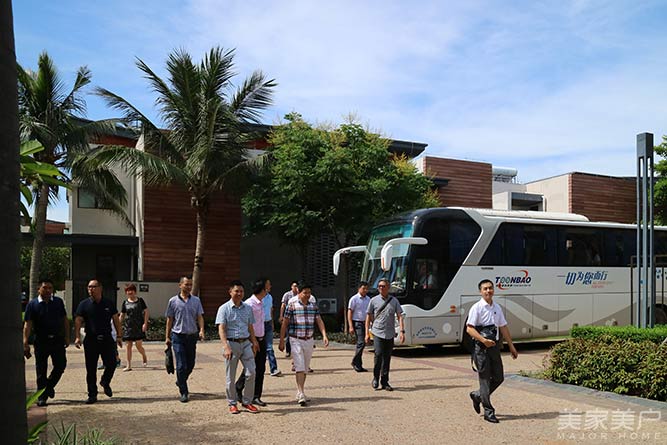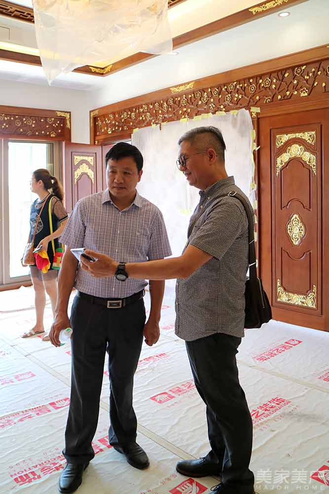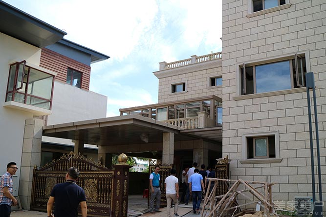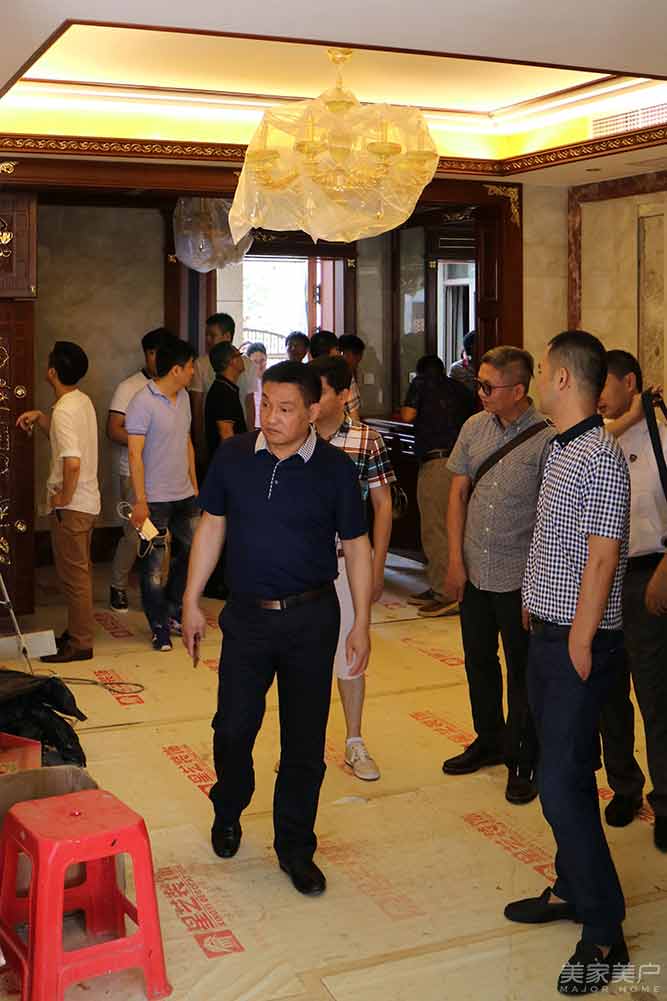 在开业活动前,东威利海口旗舰店负责人于总热情地带领着东威利家人前往参观万佳家居装饰广场董事长罗董的三水澜湾67栋别墅的工地现场。