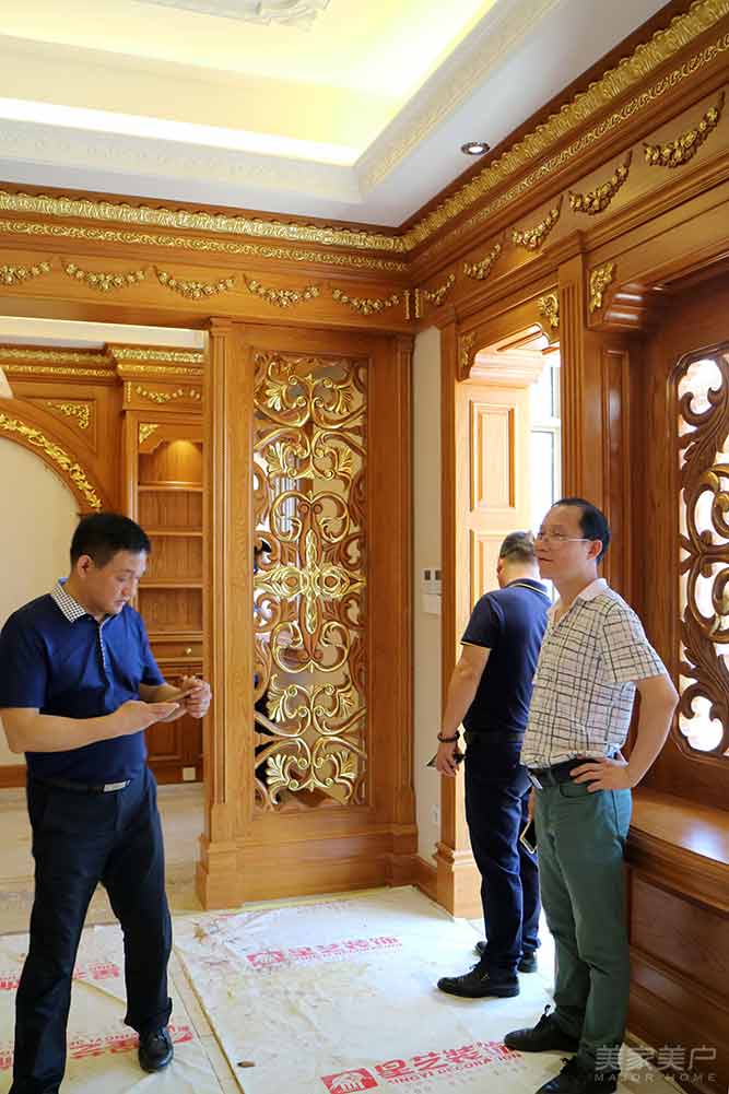 业主罗董的中式别墅整个项目定位非常高,定制柚木整装,配置高档名贵红木家具,同小区的72栋别墅工程也在工厂紧密生产中。