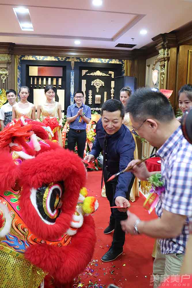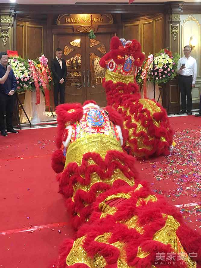 嘉宾致辞在掌声中结束,接着锣鼓声起,醒狮舞动,引导嘉宾们来到东威利展厅开业剪彩。