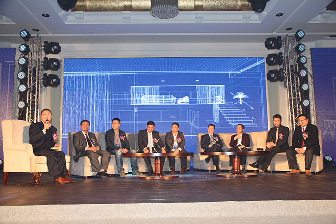 广州欧派门业有限公司总经理张俊涛、佛山市皇派门业有限公司董事长朱福庆、广东圣堡罗门业有限公司董事长吴国洪、广东高登铝业有限公司副总裁李婧、佛山市金大田门业有限公司董事长吴奋谋依次就如何开启新门业时代、如何打造佛山集成门窗品牌、百年企业的传承、关于门业资本之路的探讨等话题向与会企业进行了分享。嘉宾们均表示,在当前行业处于雾霾期,假冒品牌和粗制滥造已然成风,优秀的企业更应该坚持做好产品的设计,用心招商,创新商业模式,充分利用互联网与媒体大平台,做好企业的品牌,才能走得更远。