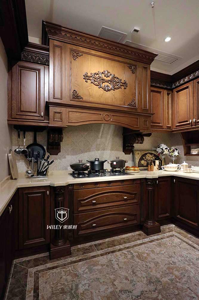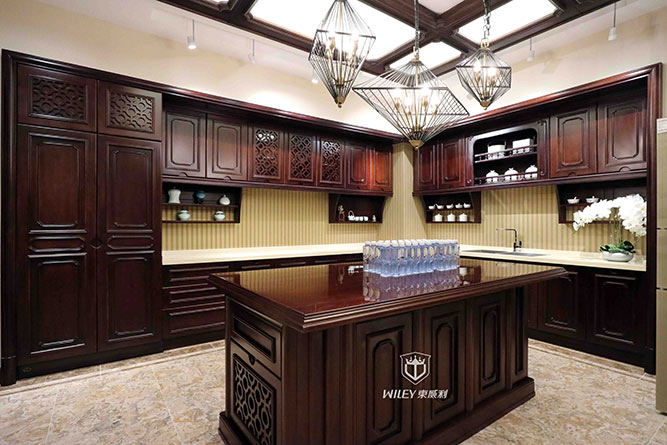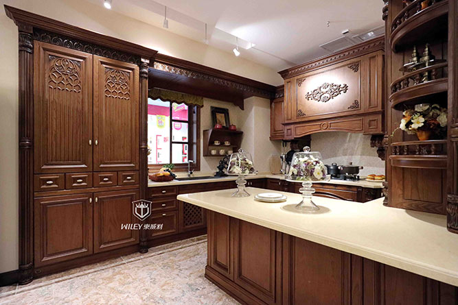 “民以食为天”。中国人注重舌尖上的感受,因此对于厨房向来都是很重视的,因为只有一个功能全面、设计科学,同时美观实用的厨房,才能让人爱上烹饪,为家人和朋友用心制作珍馐美味。风雅的中式橱柜是欣赏传统文化的业主首选,木种采用了奥克木,柜门采用了触碰式开启设计代替传统的五金拉门配件,使用极其方便;欧式橱柜采用的是白栓木,设计方面采用了装饰线条,雕花,罗马装饰柱等欧式风格元素,深为对欧洲古典风格情有独钟的业主喜爱。