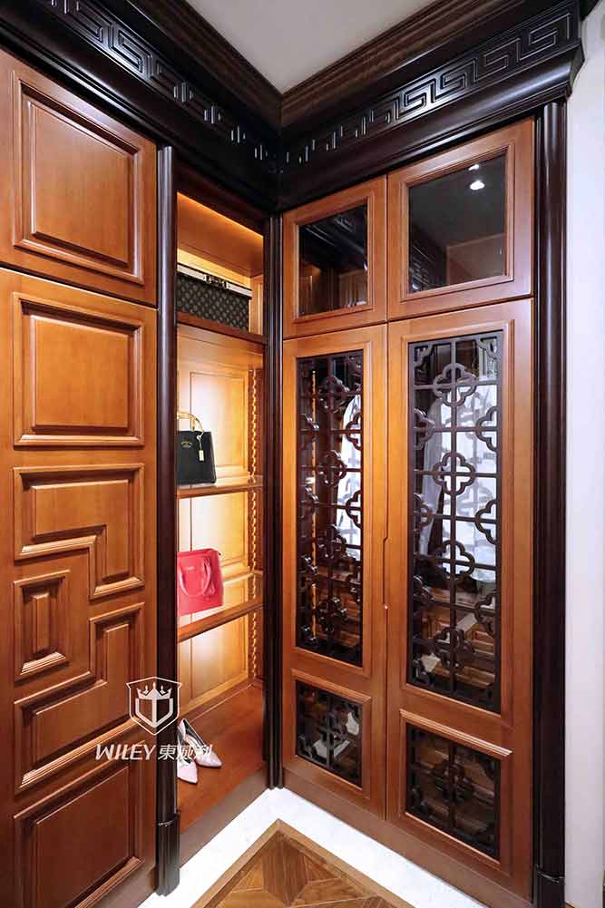 木料材质上用上了深浅颜色做成明快对比,中式花格遇上了古希腊纹样;门套以徽派元素配上罗马线条,东西方特点以最简洁的方式融汇,让设计能用最概括的方式体现民族特色,并赋予了产品长青生命力。
