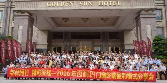 7月6日,“与君通行 精彩征程”百利玛门窗2016终端盈利模式分享会隆重举行,百利玛门窗董事长黄维寿、常务副总经理熊秋梅、营销中心总监蒋正福、生产中心总监徐先勇以及来自全国各地的百利玛门窗优秀经销商共计200余人参与此次盛会。