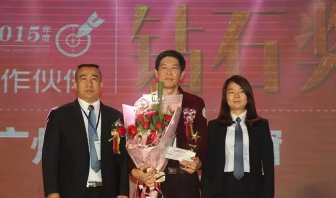 为感恩与回馈客户,力帆铝业特别设立了3个奖项青铜奖、白银奖和黄金奖。来奖励在2015年销售额前列的客户,其中还特地设立了万里挑一的战略合作钻石奖,获奖的是艾怩美门窗覃茂明先生,力帆还特意用无人机带着奖品现金支票3万元“从天而降”,而且在台上就让这张支票兑现,创意十足!