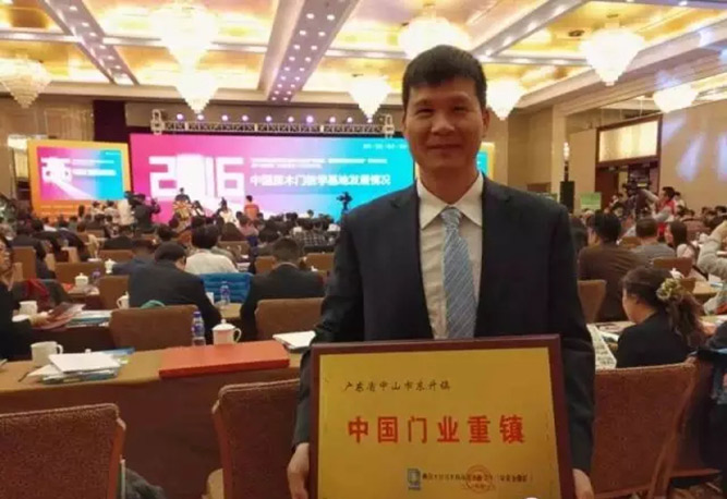 3月22日,在北京会议中心的中国木门十五周年庆典大会上,广东省中山市东升镇镇长杨荣建上台接过了牌匾,被授予“中国门业重镇”荣誉称号!