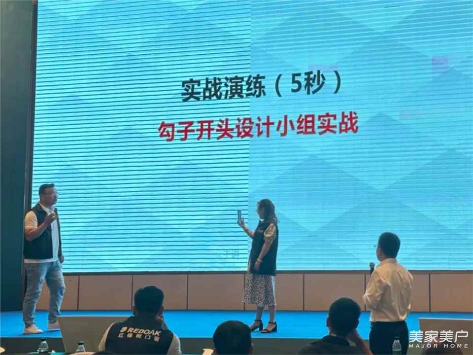 本次会议采取岛屿式分组积分制,通过每个团队成员的课程表现给予响应的分数奖励,最后评选出团队第一名,家人们的积极性得到了有效的调动,团队合作能力得到了提高。刘勇老师除了分享抖音相关理论知识,还现场给家人们分享了直播时代带来的各种机会,并且围绕抖音涨粉的3大因素、0粉如何快速锁定目标客户、抖音流量池的底层逻辑等一系列问题进行答疑指导,课程还安排了视频话术实操演练,让现场的经销商们学有所得。