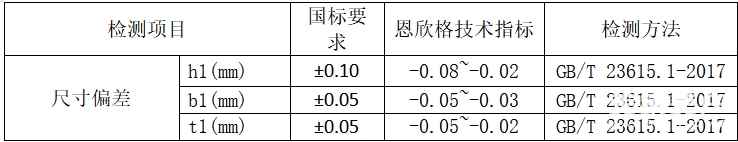 注:国标要求指标引自《GB/T 23615.1-2017》,恩欣格产品技术指标引自上海市建筑材料及构件质量监督检查站出具的检验报告,报告编号为:SL228-190283