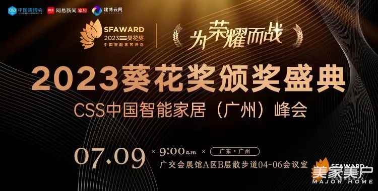 7月9日,2023第七届“葵花奖”智能家居评选颁奖盛典在广交会展馆 A 区隆重举行。现场,智能家居领袖齐聚,头部品牌云集,共同见证这场智能家居盛宴。