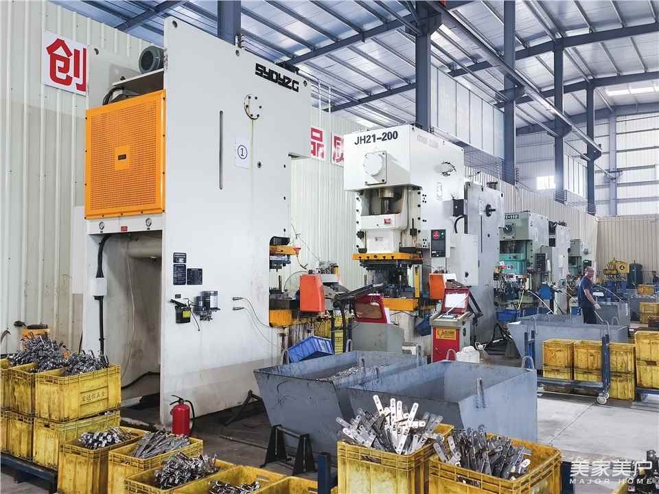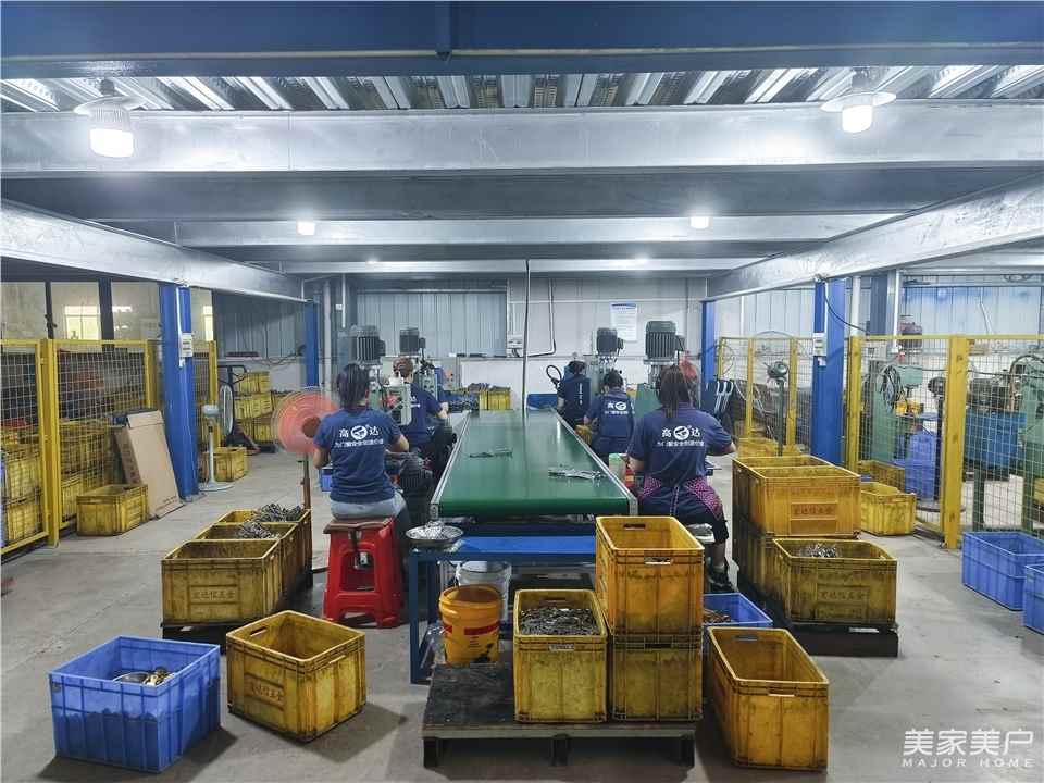 高达五金的核心技术是冲压技术,在国内处于领先地位。采访中,郑志勇详细介绍了其产品的优势。“我们主要生产一些平开窗的铰链和功能性五金,其中外开上悬门窗五金是我们的核心产品。外开上悬窗适用于南方地区,它具有双功能的开启方式:在下雨天可以悬挂通风透气,而在晴天可以打开以获得更好的通风效果。此外,它还可以清洗玻璃后再关闭,既具备了平开的功能,又具备了悬挂的功能,是一套功能性较高的高端五金产品。该产品制作要求较高,安装工序和生产工序相对复杂,大约有200到300个工序。高达五金在外开上悬五金产品方面,已拥有9项自主研发的专利。”