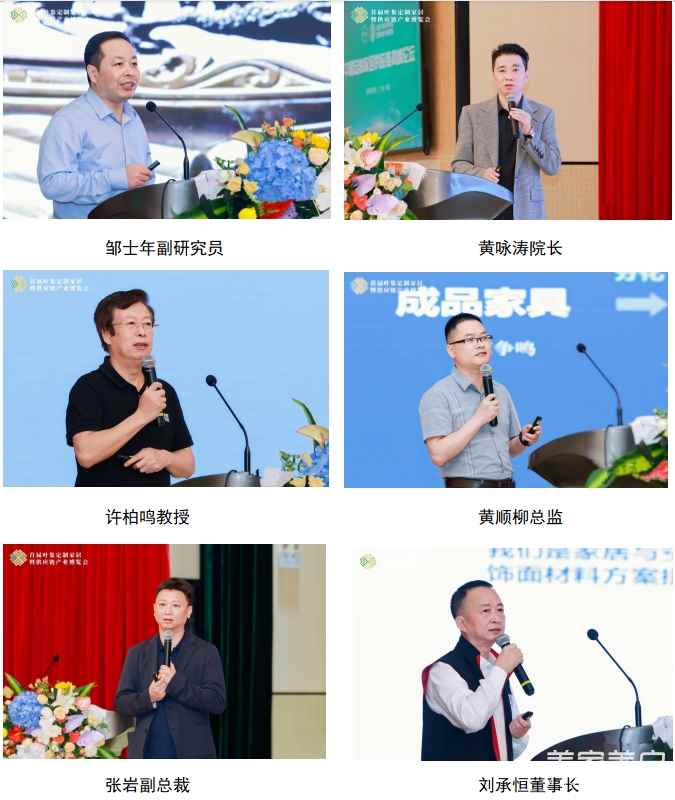 中国木材与木制品流通协会会长李佳峰在致辞中提到,木材加工行业是我国实体经济的重要组成部分。前三季度,木业跟其他产业一样,面临着许多困难,但随着国内稳经济、稳预期政策陆续出台落地,经济企稳回升的态势明显。我国正全面推进高质量发展和中国式现代化建设,木业与经济、社会发展和人民生活息息相关,我国具备完整的工业产业链,有14亿多人口的超大规模消费市场,4亿多中等收入群体,人均国内生产总值已经突破1.2万美元,这些有利因素是我国经济发展韧性强、潜力大、活力足的底气,也是中国木业持续恢复、回升向好的基础和根本。经过多年发展,叶集围绕板材产业形成了以家居产业为主导的产业集群,相信在六安市委、市政府的领导和大力支持,一定能实现“叶集家居,百年产业”的发展目标。主旨演讲环节,会议邀请到了国家信息中心经济预测部新动能(双创)研究室副主任邹士年副研究员,HDD深圳黄董设计顾问有限公司设计总监、深圳中航装饰集团设计院院长黄咏涛,深圳家具研究院院长、南京林业大学教授许柏鸣,志邦家居产品总监黄顺柳,北京闼闼同创工贸有限公司副总裁张岩和广州天之湘装饰材料有限公司董事长刘承恒先后分享了中国经济及家居市场分析和展望、木材在室内装饰的应用、定制家具与成品家具的发展趋势、板式定制家居的未来发展趋势、全屋定制发展趋势和人造板饰面材料的创新与发展等行业热点议题。