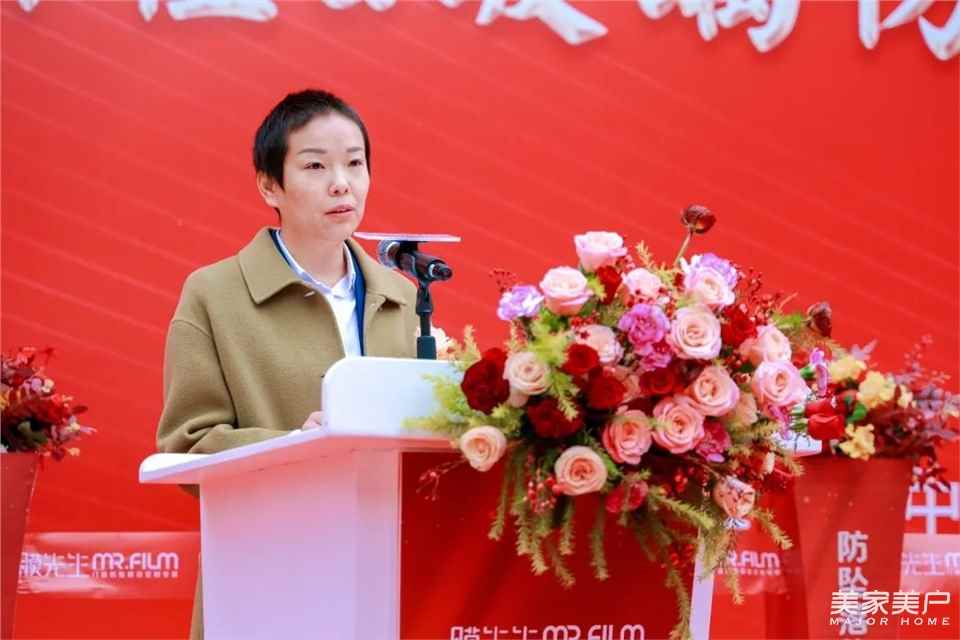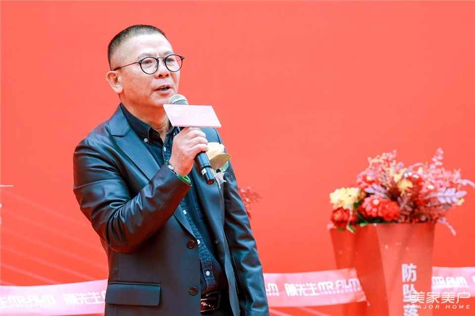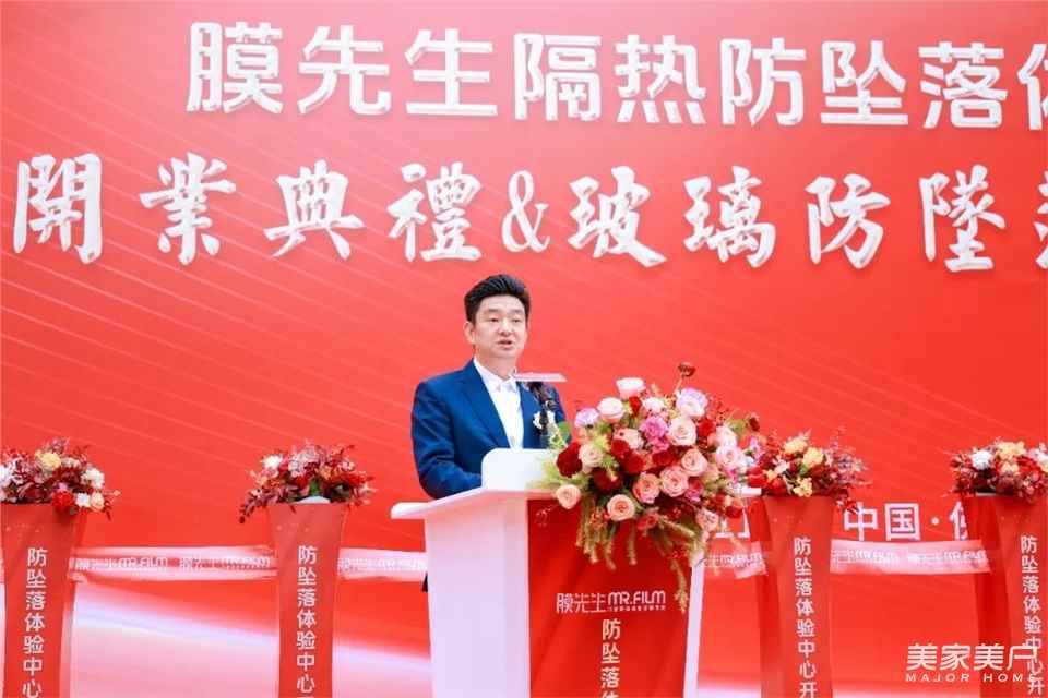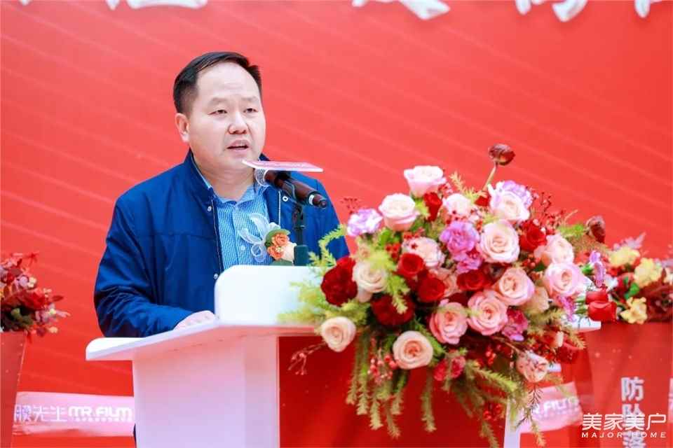 佛山市膜先生新材料科技有限公司董事长王浩杰向大会作致辞,感谢各级领导和同仁们莅临现场,并对膜先生的革命性产品玻璃隔热防坠落安全门窗膜作详细介绍。