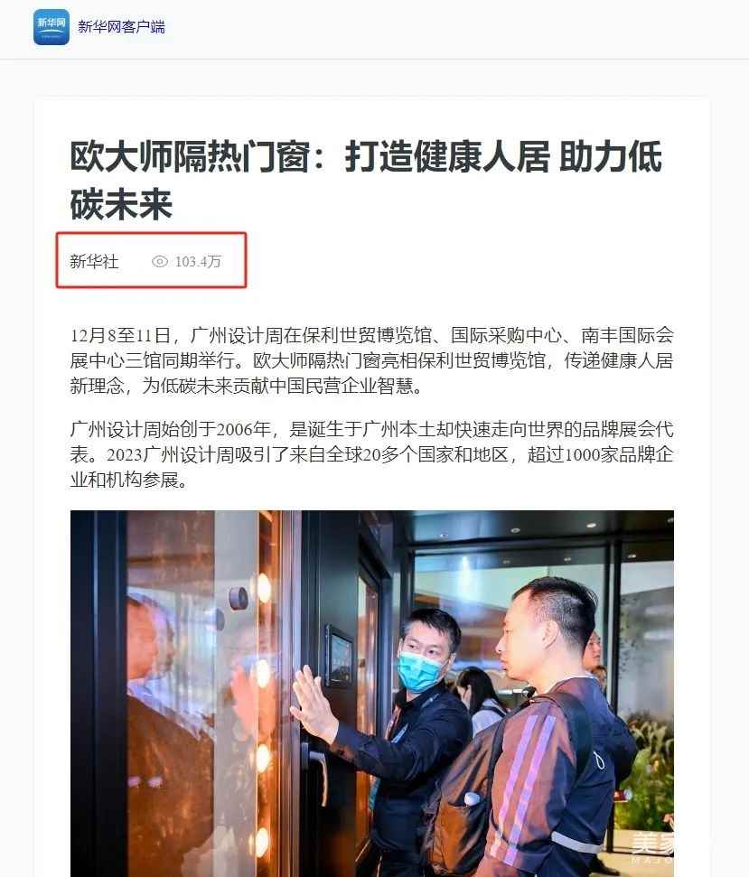 择高而立,向远而行。此次2023广州设计周,各大媒体对欧大师隔热门窗的关注和报道,不仅是对欧大师隔热门窗隔热理念和创新技术的认可,更是对其社会责任和行业影响力的肯定。