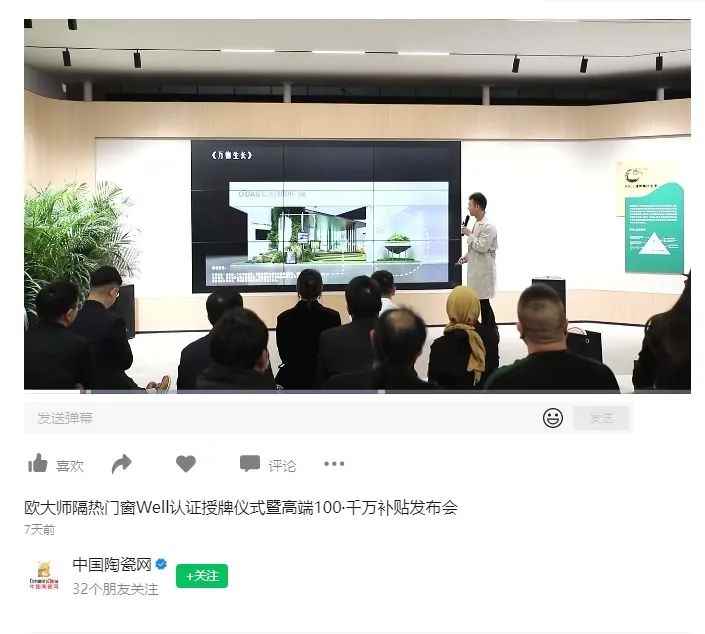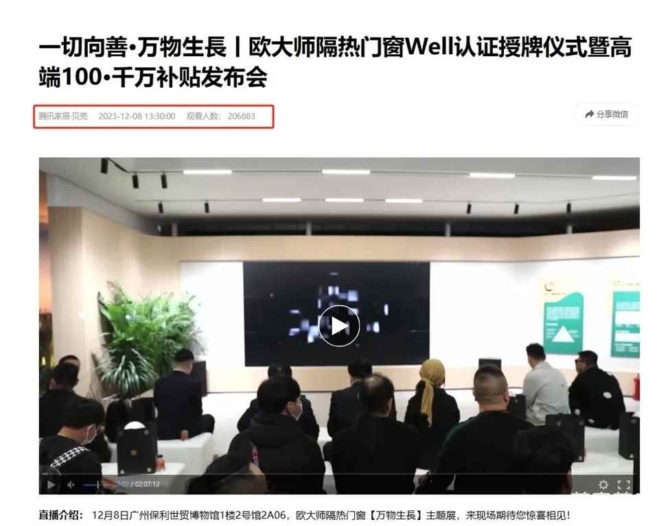 基于线上线下剧增的流量池,实现话题出圈,欧大师隔热门窗为线上观众讲解精彩的展馆,将真实还原的万物生长场景娓娓道来,通过屏幕将展会的亮点传达更大范围,品牌势能再度飙升!