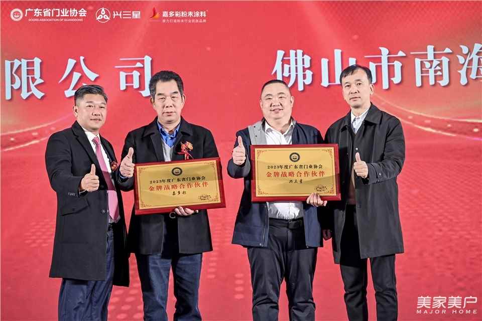 本次晚宴现场,广东省门业协会为推动行业发展做出突出贡献的企业颁发了荣誉。兴三星凭借领先的技术实力和强大制造实力,荣获“定制门窗五金领军企业”、“金牌战略合作伙伴”等多项荣誉。这些荣誉是兴三星与门窗行业深度链接的证明。