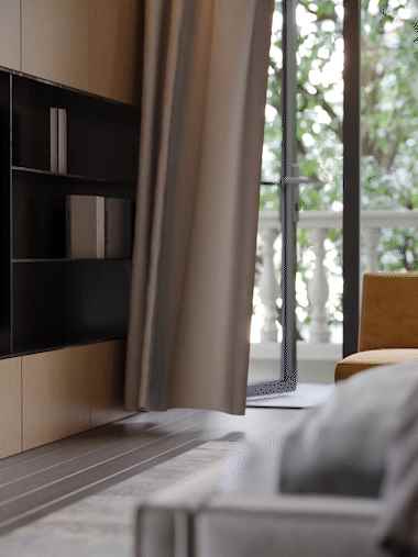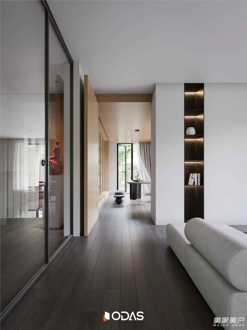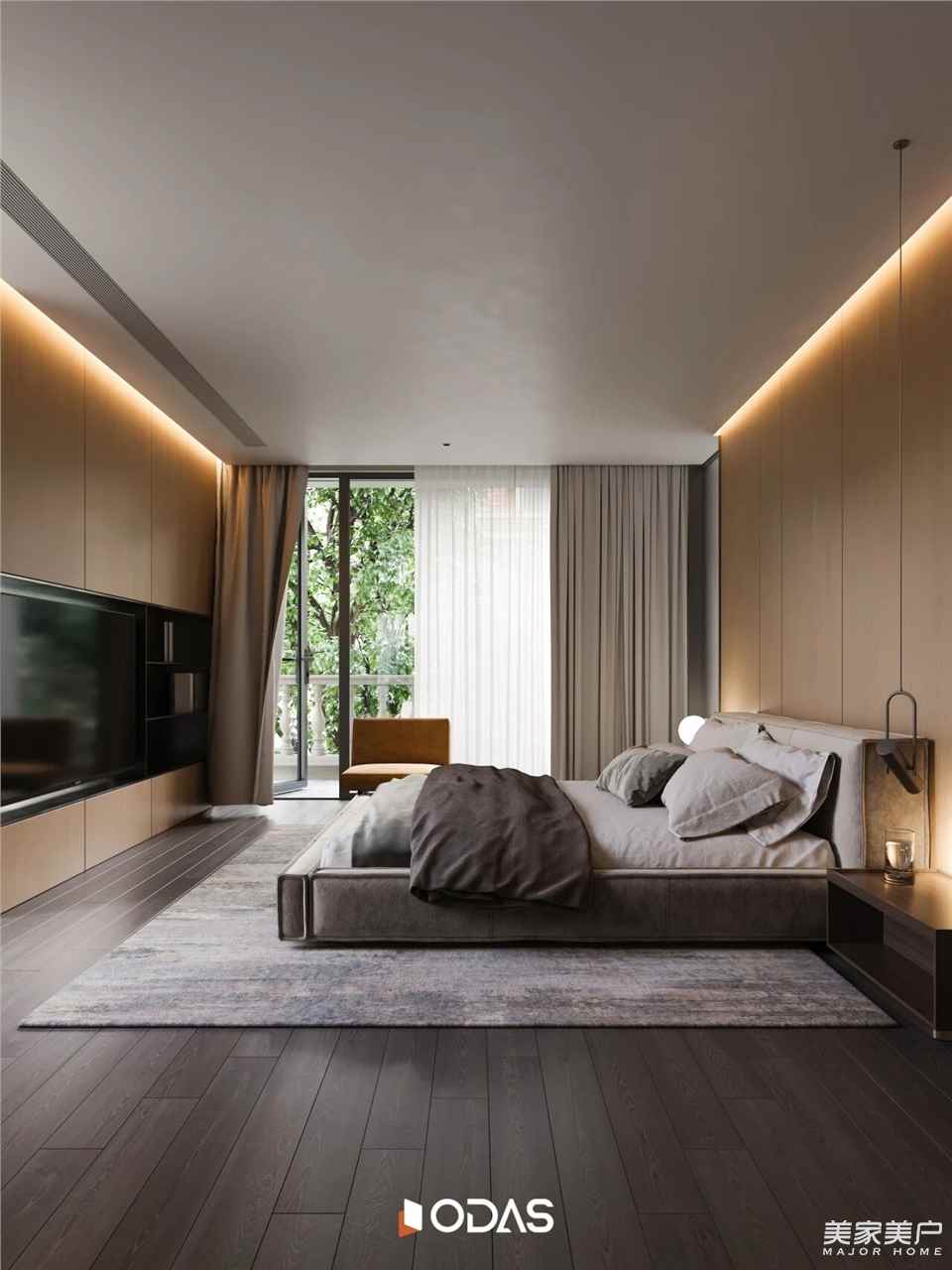 独享休憩功能的这一层以“自然而往”为核心理念,将主卧套房起居和睡眠功能自然融合,层层递进的材质触感勾勒出舒适氛围。通透开放式格局贯通完整居住体验,全景绿意与隐私性并存。欧大师悦居40极窄吊趟门为空间增色,吊趟设计顺滑流畅,无轨道积尘,扫地机器人轻松出入清洁,推动间隐入墙壁,探索着“有与无”的微妙平衡,成就空间的简法美学。
