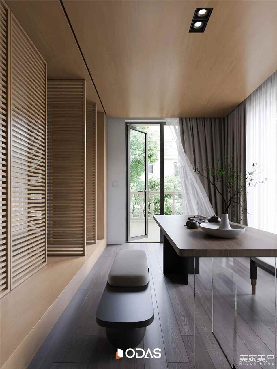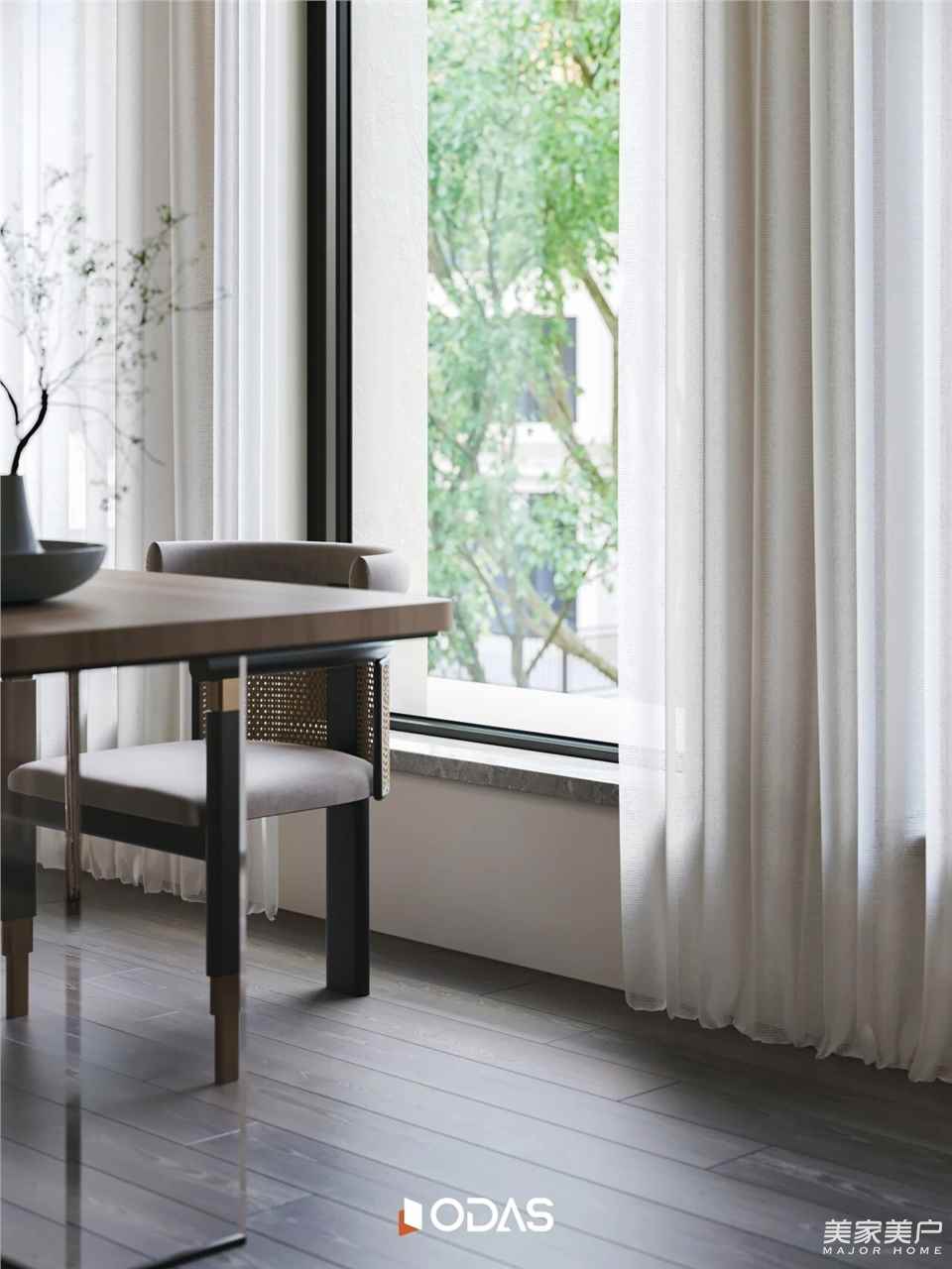 在欧大师门窗的加持下,品茗区通透开放式格局,每一处都透露出设计师对生活的深刻理解与热爱。一盏茶的功夫,随性留恋自然松弛,从容淡定。既延续空间的人居自然,又以现代精致勾勒业主审美品味。
