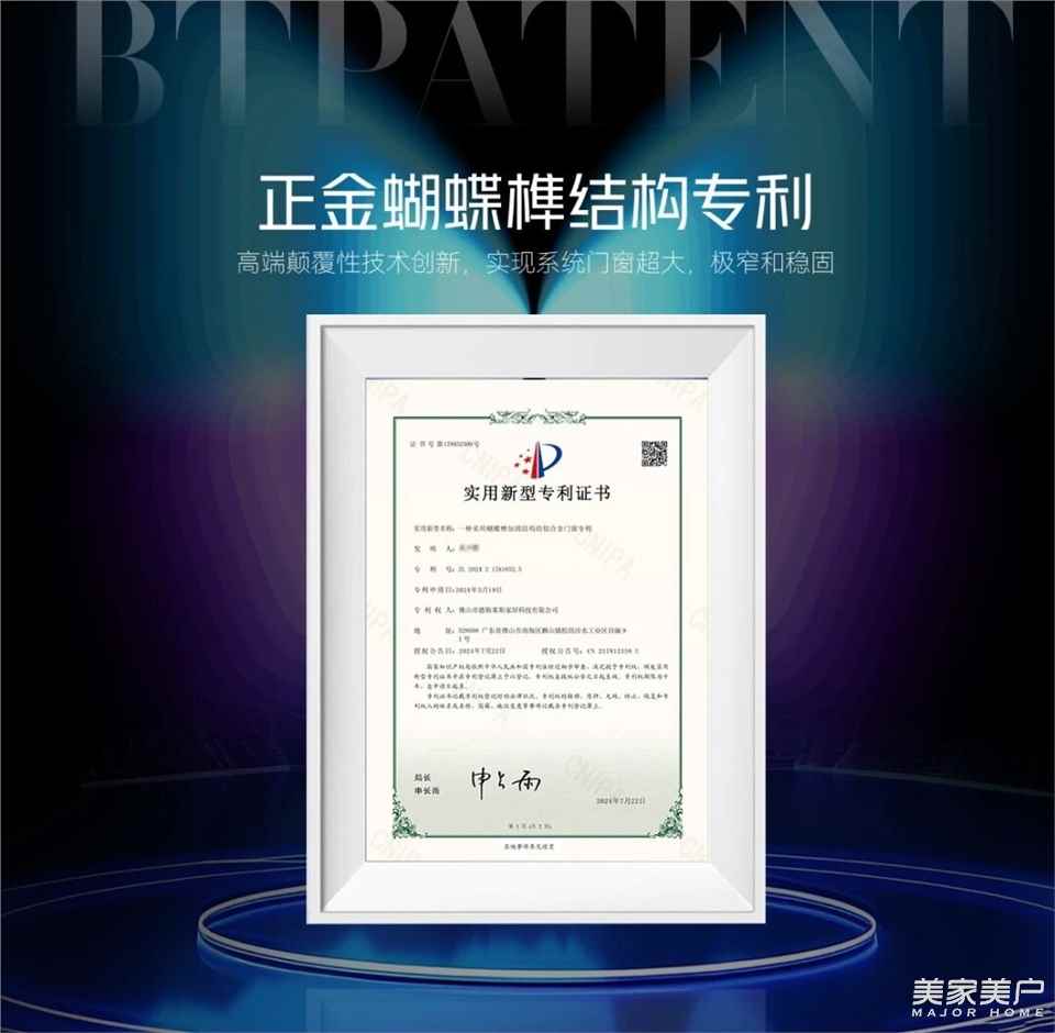 高端安全门窗不做表面功夫,正金门窗深耕行业17载,拥有186项高端安全专利,并拥有强大技术研发团队和专业设计驱动产品升级。此前正金门窗经过多年的技术积累和突破,荣获「BTPatent - Butterfly Tenon Patent」权威专利证书,以技术赋能,引领行业品质发展之路,以研发驱动,助力产品创新升级。再次彰显了正金门窗在行业内的领先地位与品牌实力。