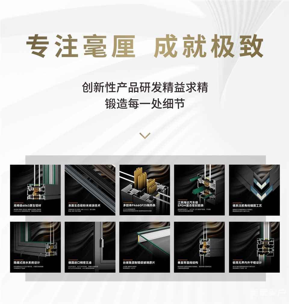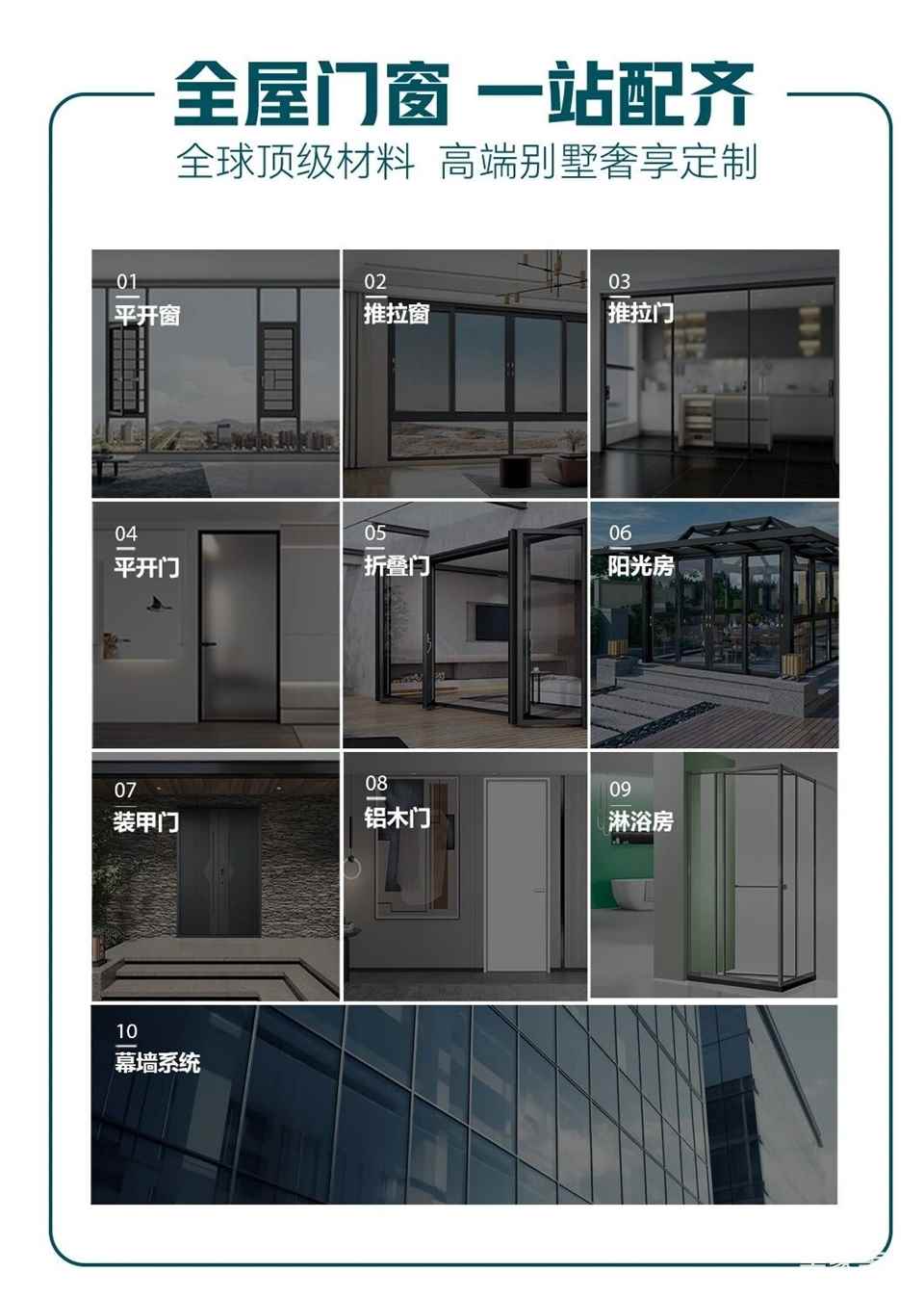 同时正金门窗基于对市场需求的持续精研,全面升级产品的隔音、隔热、水密性、气密性和抗风压等性能,以从容姿态应对5大气候带的严苛挑战,赢得不同地域、气候条件下消费者的广泛青睐。为加强空间设计整体性,正金门窗产品线涵盖覆盖平开窗、平开门、推拉窗、推拉门、折叠门、阳光房、铝木门、淋浴房、幕墙系列及全铝系统装甲门等全品类产品矩阵,提供个性化配置方案,满足全屋门窗一站式高端安全门窗定制需求。