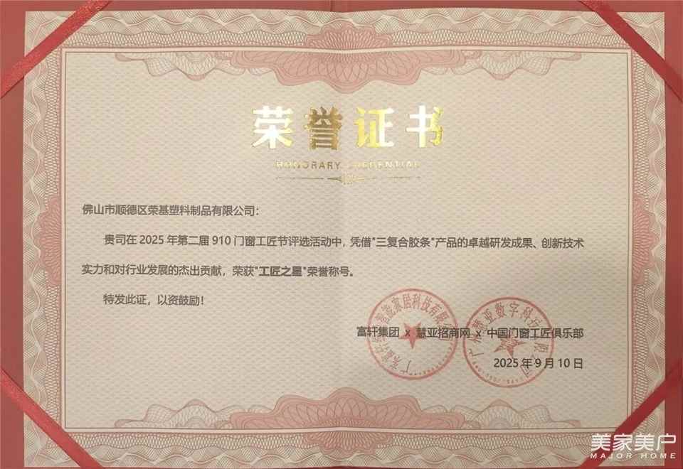 富轩 910 门窗工匠节,荣基三复合胶条斩获“工匠之星”