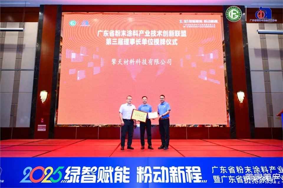 擎天材料科技有限公司当选为第三届理事长单位,凭借其在聚酯树脂研发、粉末涂料生产等领域的技术优势,将继续牵头联盟工作;广东睿智环保、南海嘉多彩、东莞爱粤金属、江门皇宙实业等10家企业当选为副理事长单位,涵盖粉末涂料生产、原材料供应、设备制造等核心环节;此外,80余家企业、高校及科研机构当选为理事单位,包括中山大学、华南理工大学等高校的材料学院,广东产品质量监督检验研究院等检测机构,以及烟台东辉粉末设备、赢创特种化学等产业链配套企业。