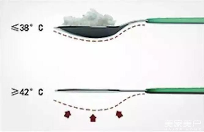 当汤匙中的食物低于38度的时候,其形状就跟大家熟悉的汤匙一样,有着浅浅的下凹弧度;可一旦温度高过42度,汤匙便会变成扁平的一片金属,一来不方便舀起食物,二来告诉家长这食物对孩子来说太烫了。