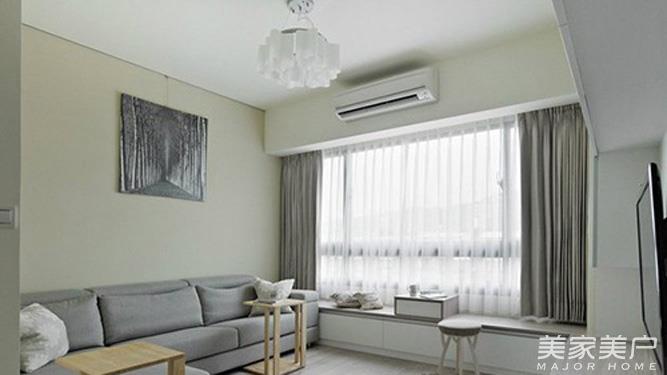 对于阁楼型的客厅飘窗,它的外观大多是以不规则的建筑形状呈现在观众面前。以这一款为例,飘窗的天花造型成尖角状,比起传统的平整设计它看起来就要特别很多,然后在把飘窗改造成小卧室,与客厅风格一致搭配,也增加了卧室生活的乐趣。