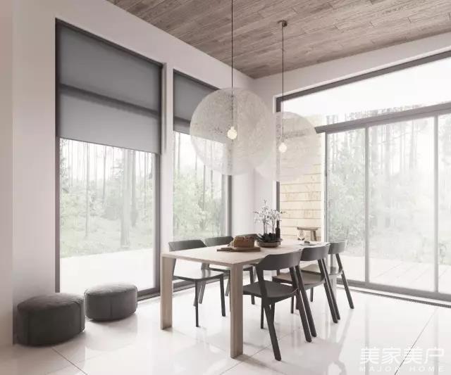 内部没有繁琐拥挤的设置,更多的让空间释放,给人安静悠闲的感觉。大窗户有利于采光和欣赏到夜景,而屋内的色调也与森林统一。