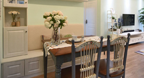 很多小户型空间除了把餐厅与起居室设置在一起之外,把餐桌摆放到厨房里面也未免不是另一种方法。厨房空间不是过分狭窄的居室可以考虑,在厨房里面直接打造用餐空间,除了节省了空间外,备餐以及收拾都能够带来无限的方便。