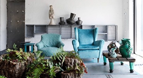 位于米兰老城区Tortona的度假屋。Paola Navone以原创设计突破了既有空间的使用,展现强烈个人风格。蓝色油罐桶里种植的刺苞菜蓟、延伸整体外墙的绿植,是与造景师朋友StefanaBaccari共同创作, 名为Blue Bidon Garden的另类门前小花。