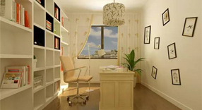 书房尤其不要使用绿色来装饰,虽然说多接触绿色有利于缓解眼部疲劳,但这里说的绿色应该是自然植物的绿色。可以适当地在书房摆放几盆绿植,但不要将整个书房的色调定为绿色,以免使用者无法集中精神。