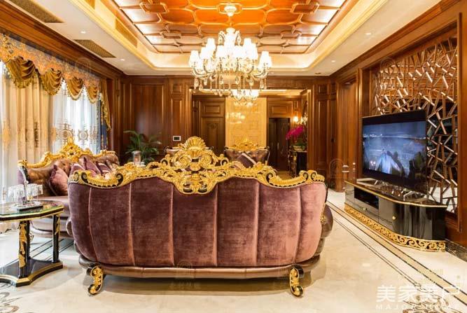 最令人移不开眼的当属客厅中欧式紫色沙发,在璀璨水晶吊灯的照射下,散发着摄人心魂的光芒。在中国传统里,紫色是极为尊贵的颜色,不为一般人使用,在西方,亦代表尊贵,向来为贵族钟情。