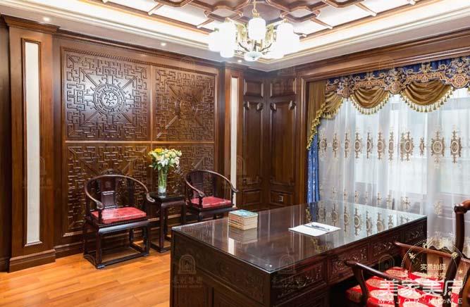 步入中式书房,古朴气息迎面而来,端正规整的书桌,线条流畅的官帽椅,花纹细腻地皇宫圈椅,大量中式元素的运用,在这里看书写字多了一分惬意。