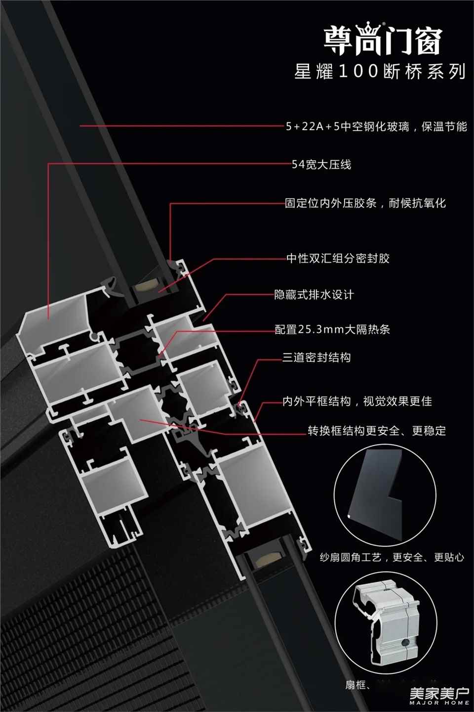 星耀系列是一款功能齐全的系统门窗,销钉注胶的一体成型工艺提升了拼角工艺的处理。