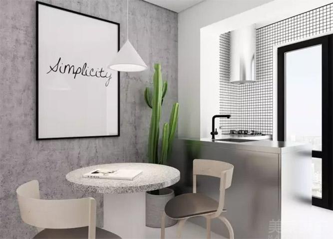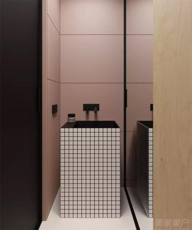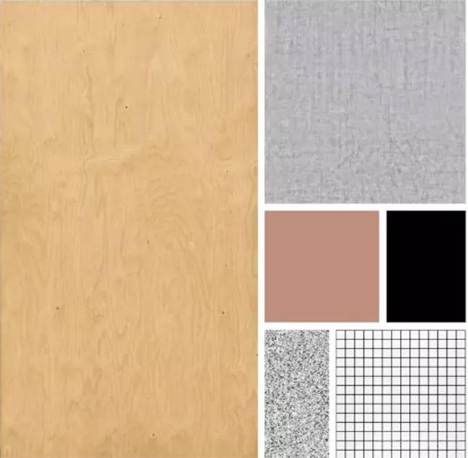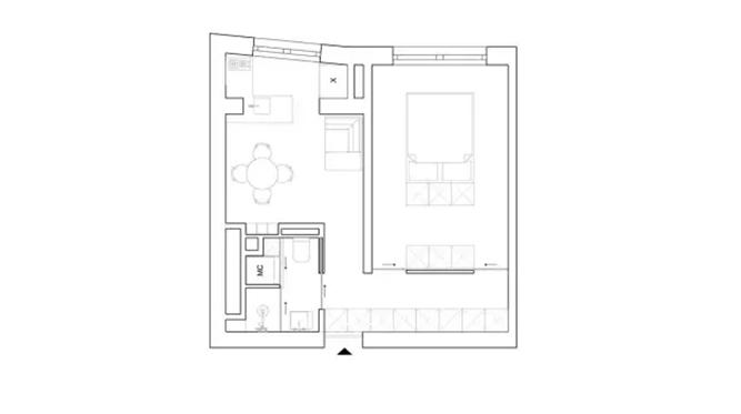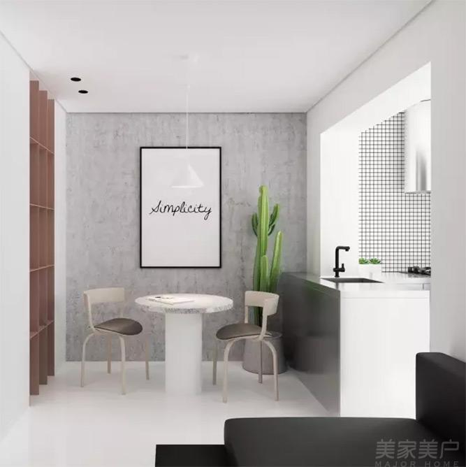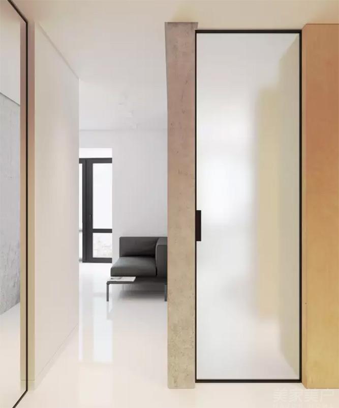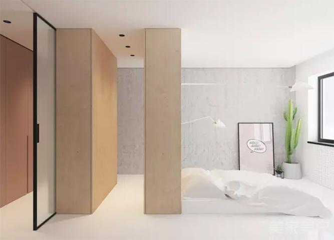 用六种材质搭配 - 木材、水泥、大理石、瓷砖和两种复合材质,每个房间都是不同的组合。为了节省空间,所有的房间都使用推拉门。餐桌上和卧室的白色灯具在房间中十分亮眼。