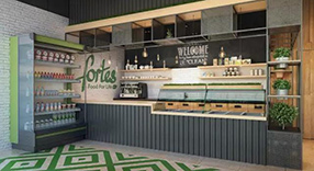 俄罗斯设计师 Ekaterina Domracheva 为咖啡厅 Fortes 提供的空间方案展示。