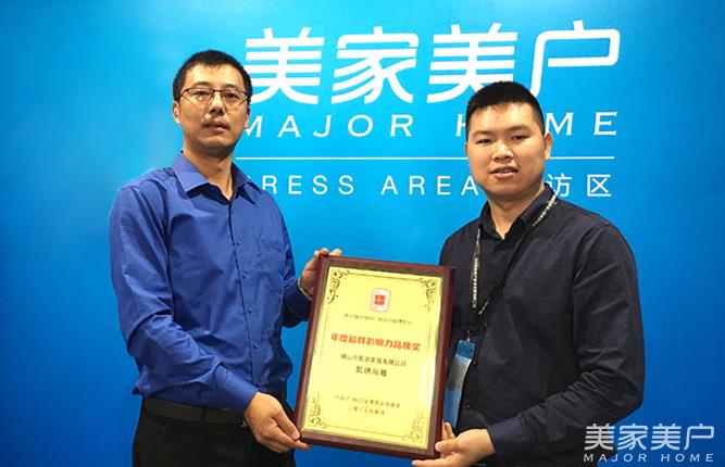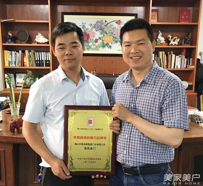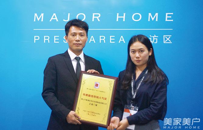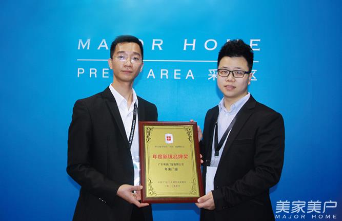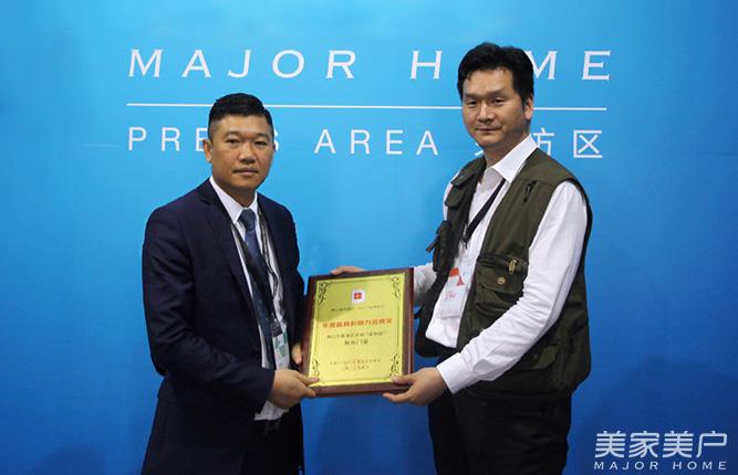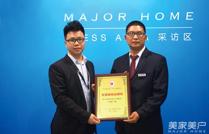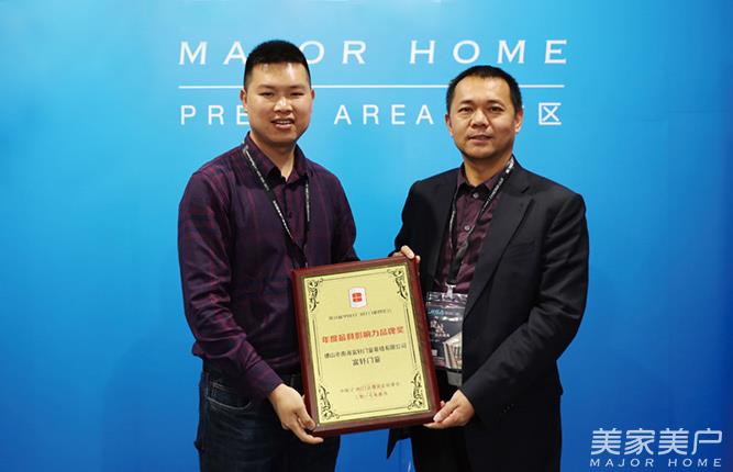 粤美门窗事业部总监黄创添(图左)接受伟德国际公司颁奖