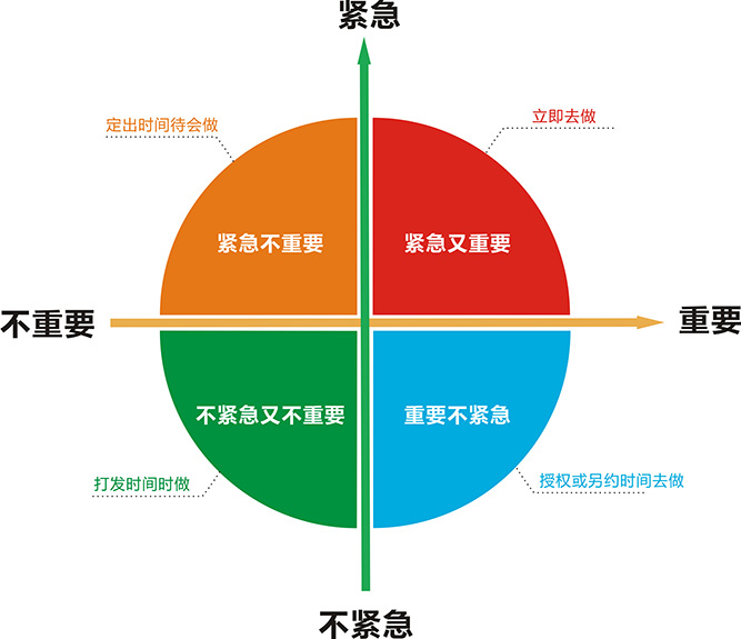 第四个是不紧急又不重要的。这类事情放手让下属去做吧。有时间就让他们汇报会关注下,没有时间也影响不了大局。