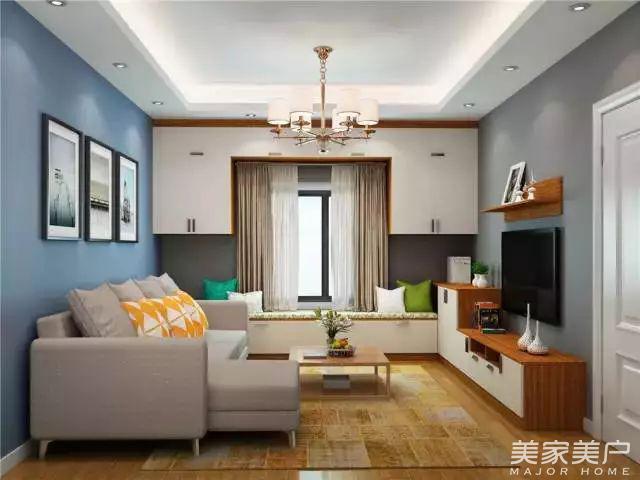 客户要求:虽然是小户型,但客厅的面积比较大,除了沙发茶几和电视柜之外,希望空间再丰富点。主卧不需要太多储物空间,满足最基本的功能即可,次卧则需要比较强大的功能。