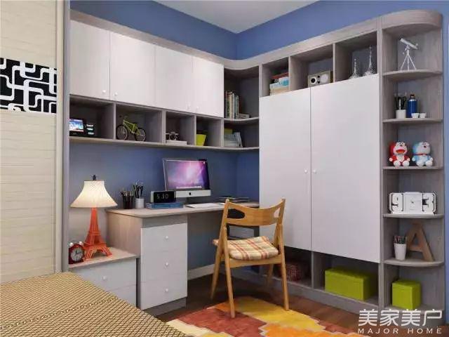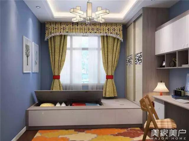 榻榻米+衣柜+转角书桌的组合打造强大的储物系统,解决卧室睡眠和储物的需求,布局到位,整体更统一流畅。