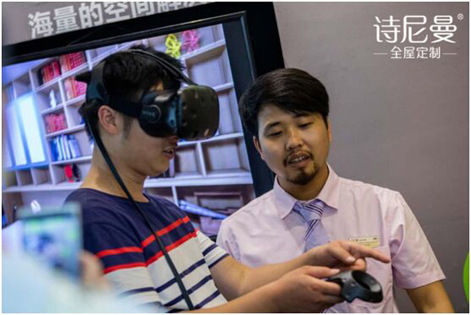 值得一提的是,本次展会为了提高用户的体验度,创先实现了从平面体验到720°立体体验,展馆内VR体验区设置了精彩的VR实景家居效果,只要体验者带上VR眼镜,操作遥控手柄,就能如亲临现场感受家居的整体设计效果,实现了实地勘察和场景体验的完美结合。VR技术的成熟和引入,能更方便的为用户提供海量的空间解决方案,并直接通过虚拟场景得以体验感受整体家居设计效果,全方位体验后快速预约量尺,省时省心。