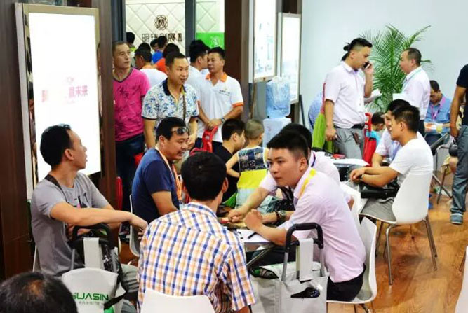 展厅里,不管是华丽的皇者系列,还是简约的柏林系列在灯光和装饰物的衬托下更显尊贵,受到了参展来宾长时间的驻足欣赏。不少观众通过触摸,推拉等方式亲身体验产品的流畅度与舒适度,每一个产品展示区都成为了人群的聚集之地。