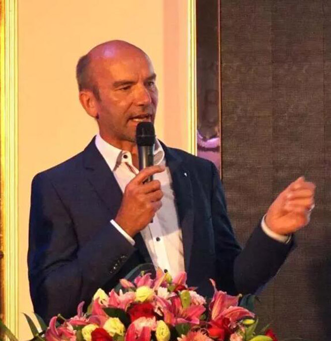 在7月7日晚会上,怡塑宝集团全球总裁担各先生(钟董旁)、中国区总经理卫浩文先生(上图左二)、华南区经理李冰中先生(上图左三)亲临现场与钟董签约。签字完后,担各总裁还向全场发表演讲,他很感谢钟董的招待,感谢中国朋友的热情,同时他也介绍了怡塑宝全球领先的技术优势,(卫浩文先生在旁翻译)。担各先生的演讲博得了全场朋友的一片掌声。