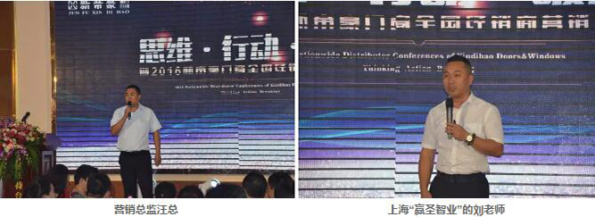 随后,上海“赢圣智业”的刘老师为与会人员进行了以“营销破局”为主题的课程开讲。刘老师围绕改变老板和员工的思维方式、老板以实际行动作改变、最后实现突破生意难做的困局这几个方面进行分析讲解。激情洋溢,劳逸结合的授课,让在座的经销商都有所共鸣。